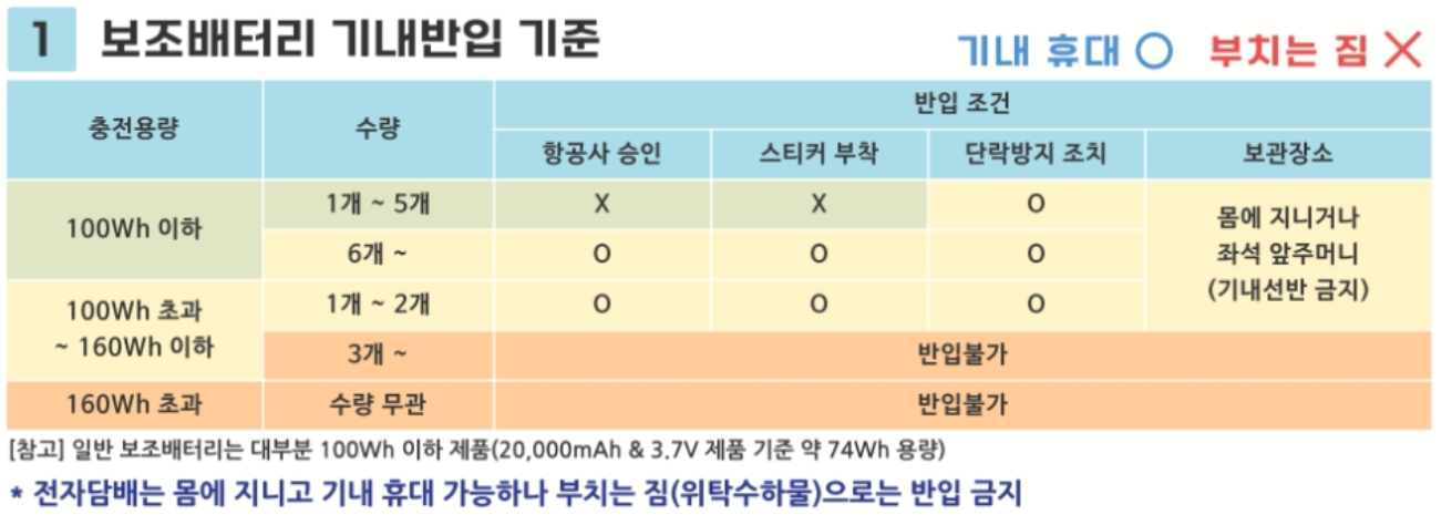✅보조베터리 반입 규정 강화