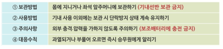 보조배터리 기내관리 및 대응수칙