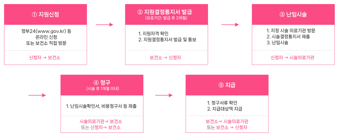 지원 신청은 시술을 받기 전에 해야 하며, 보통 시술을 시작하기 전에 신청서를 작성해 온라인이나 보건소로 신청한 후, 지원 결정 통지서를 받게 되면 이를 시술 의료기관에 제출하면 됩니다. 보다 자세한 절차는 본문을 확인해주시길 바랍니다.