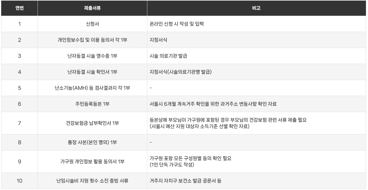 - 2023.09.01 이후 난자동결 시술자부터 지원 신청 가능